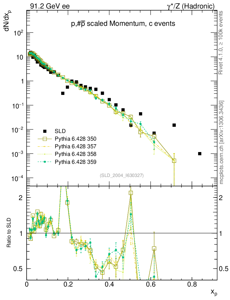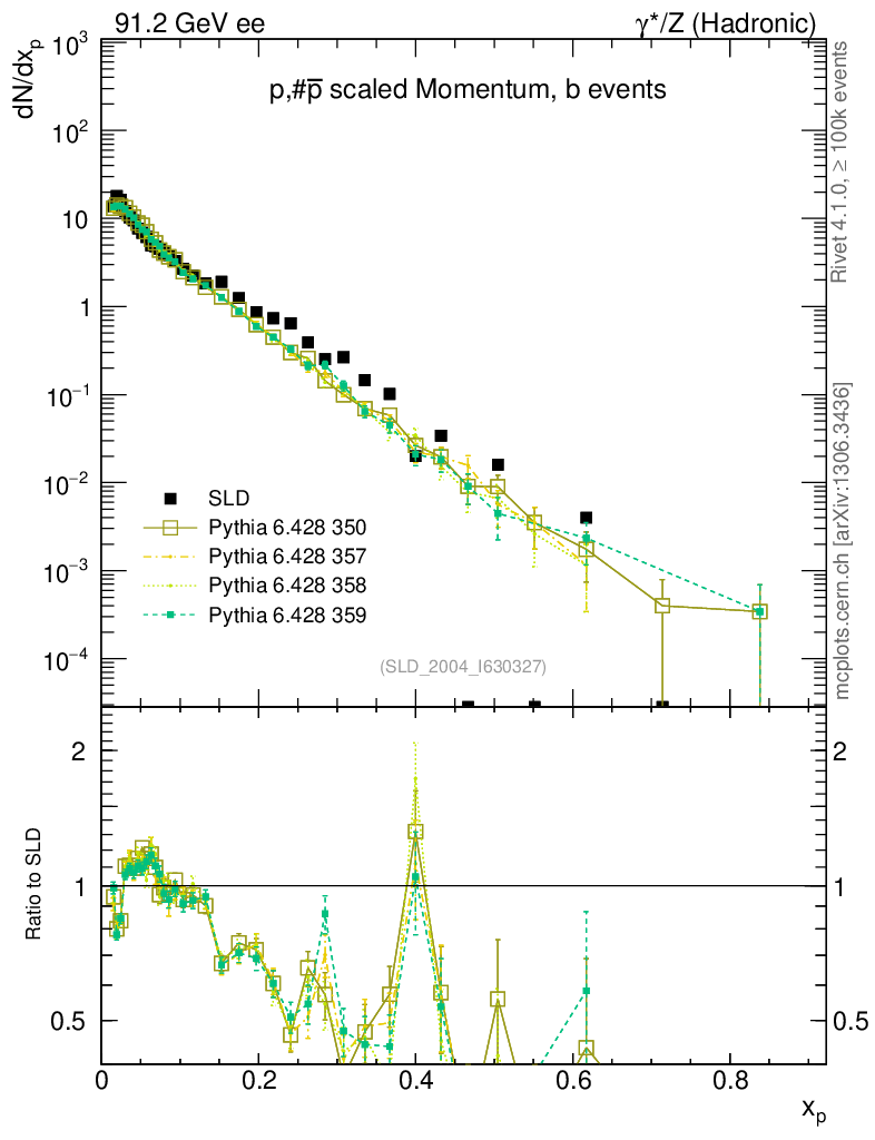 ee : γ*/Z (hadronic) : Identified Particles : p spectrum
