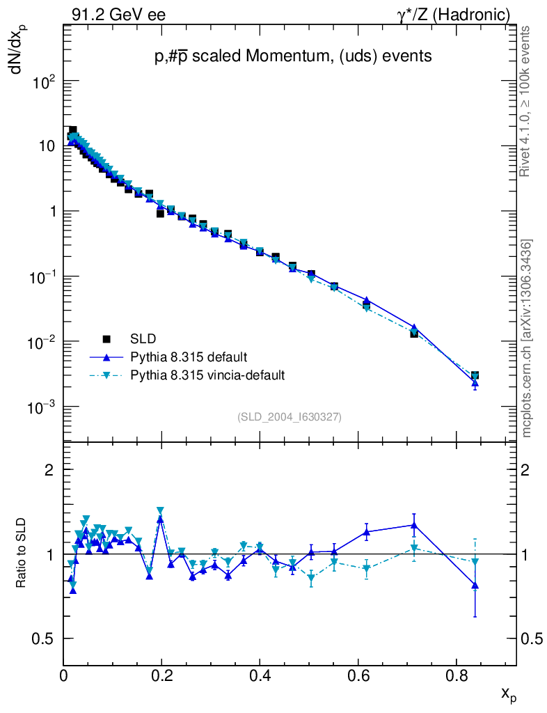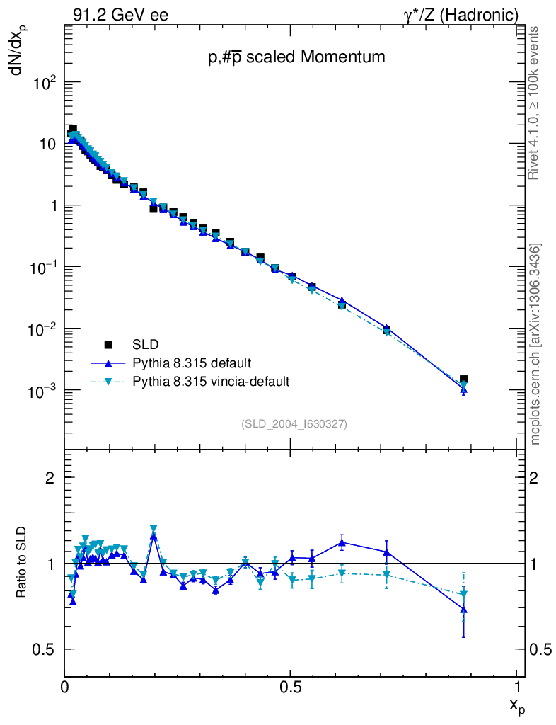 ee : γ*/Z (hadronic) : Identified Particles : p spectrum