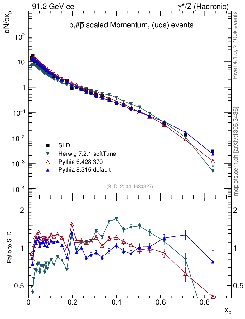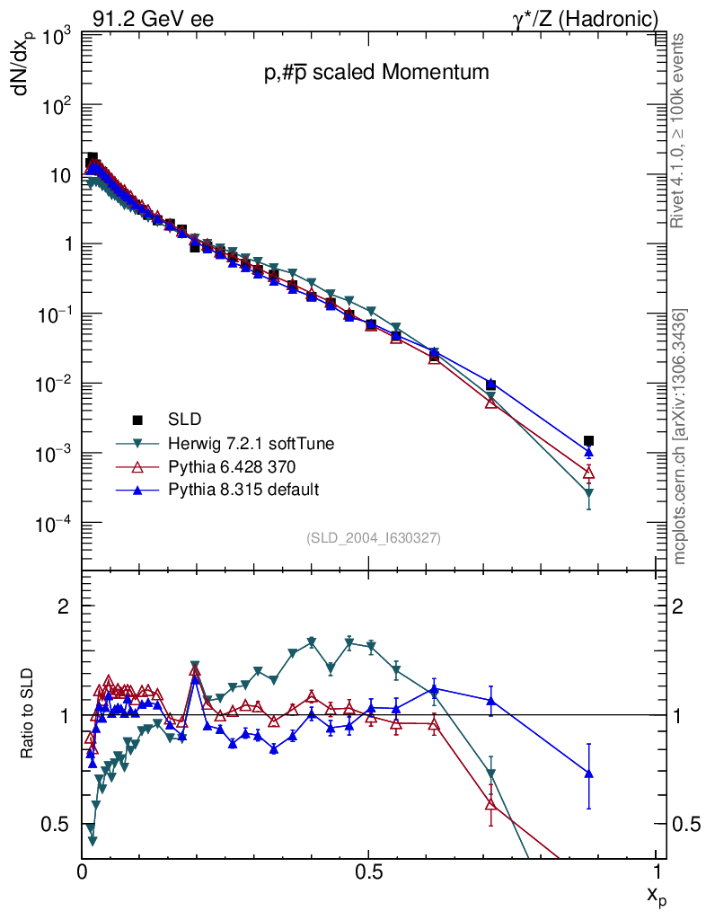 ee : γ*/Z (hadronic) : Identified Particles : p spectrum