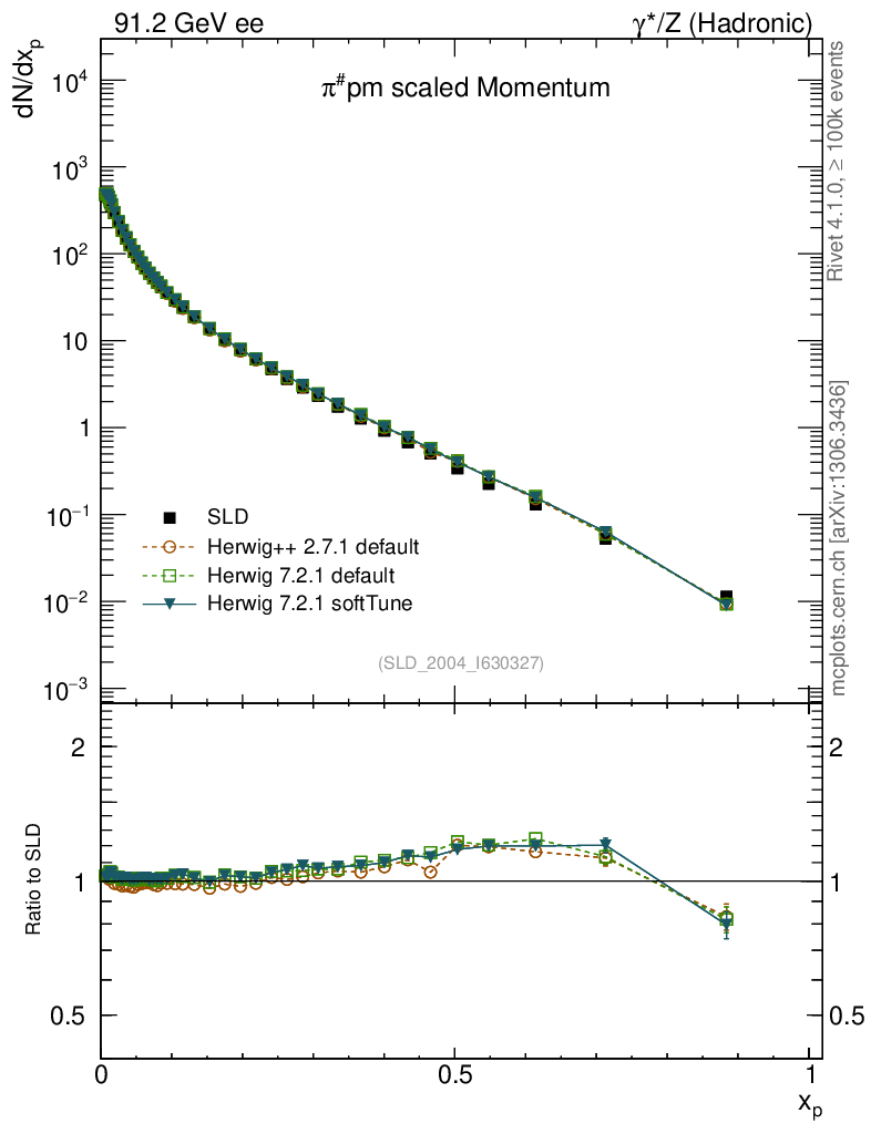 ee : γ*/Z (hadronic) : Identified Particles : π spectrum