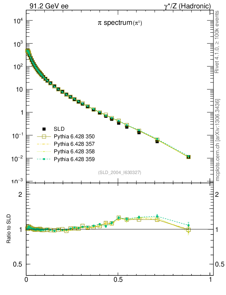 ee : γ*/Z (hadronic) : Identified Particles : π spectrum