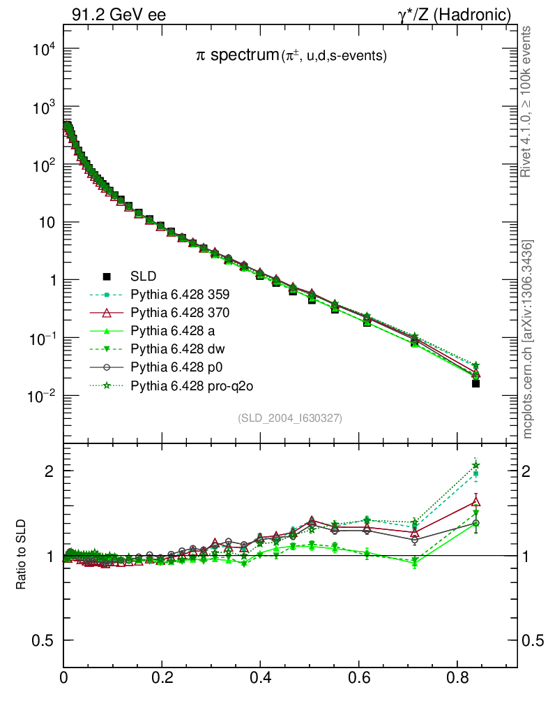 ee : γ*/Z (hadronic) : Identified Particles : π spectrum