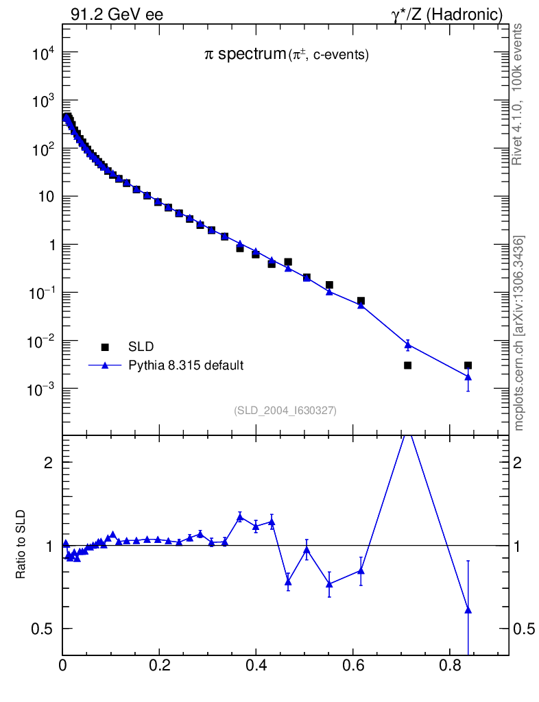 ee : γ*/Z (hadronic) : Identified Particles : π spectrum