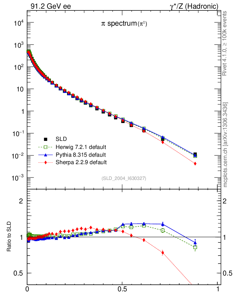 ee : γ*/Z (hadronic) : Identified Particles : π spectrum