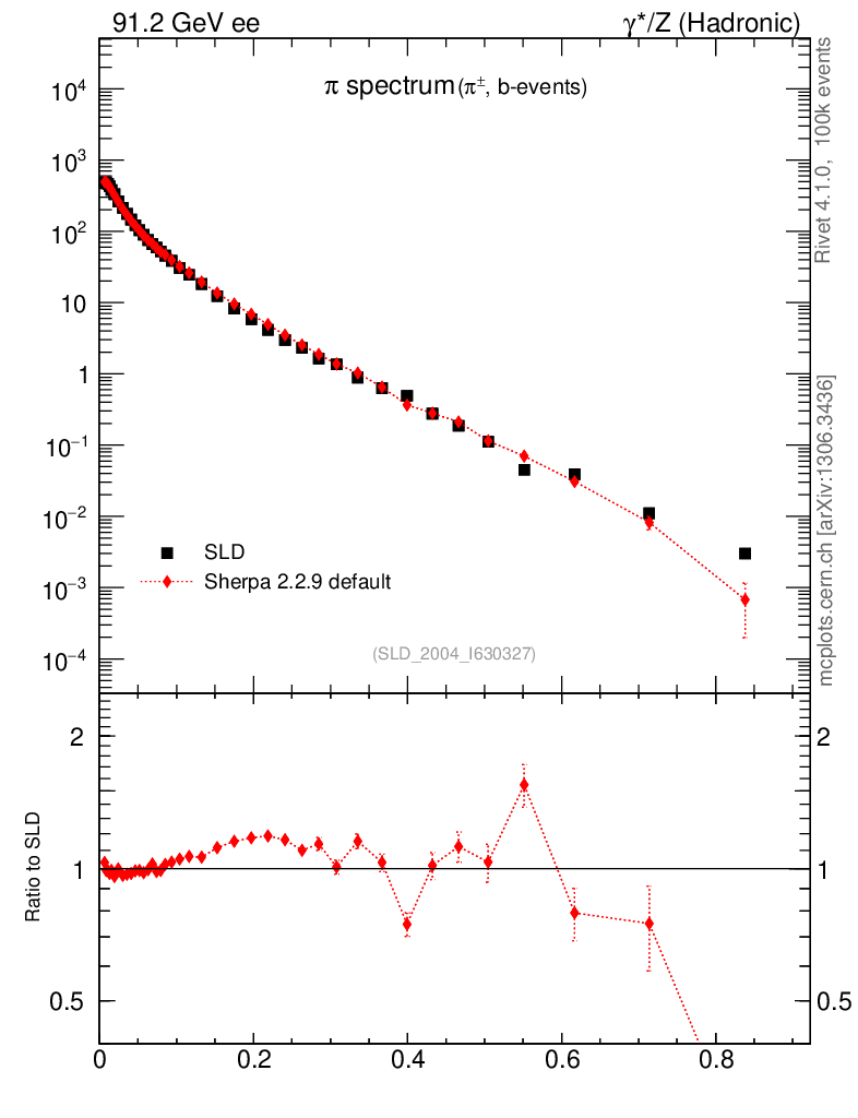 ee : γ*/Z (hadronic) : Identified Particles : π spectrum