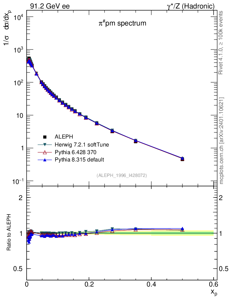 ee : γ*/Z (hadronic) : Identified Particles : π spectrum