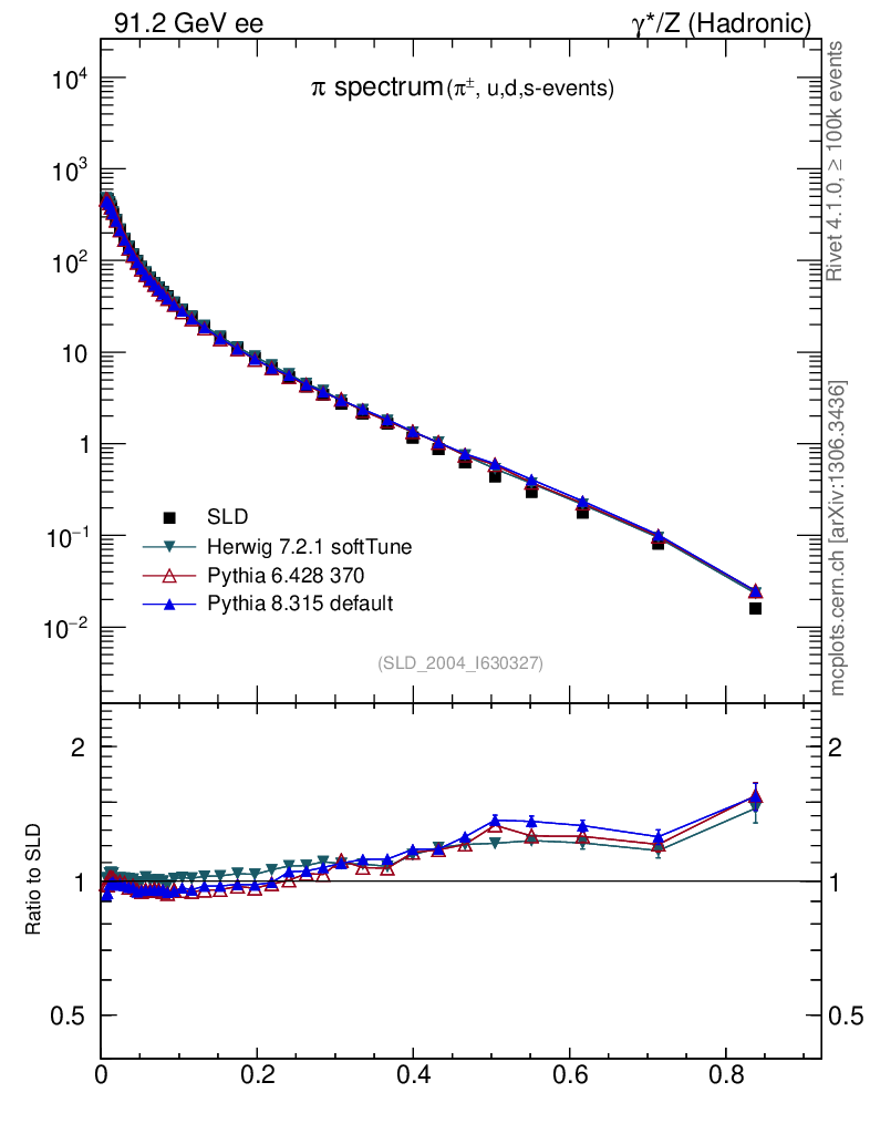ee : γ*/Z (hadronic) : Identified Particles : π spectrum