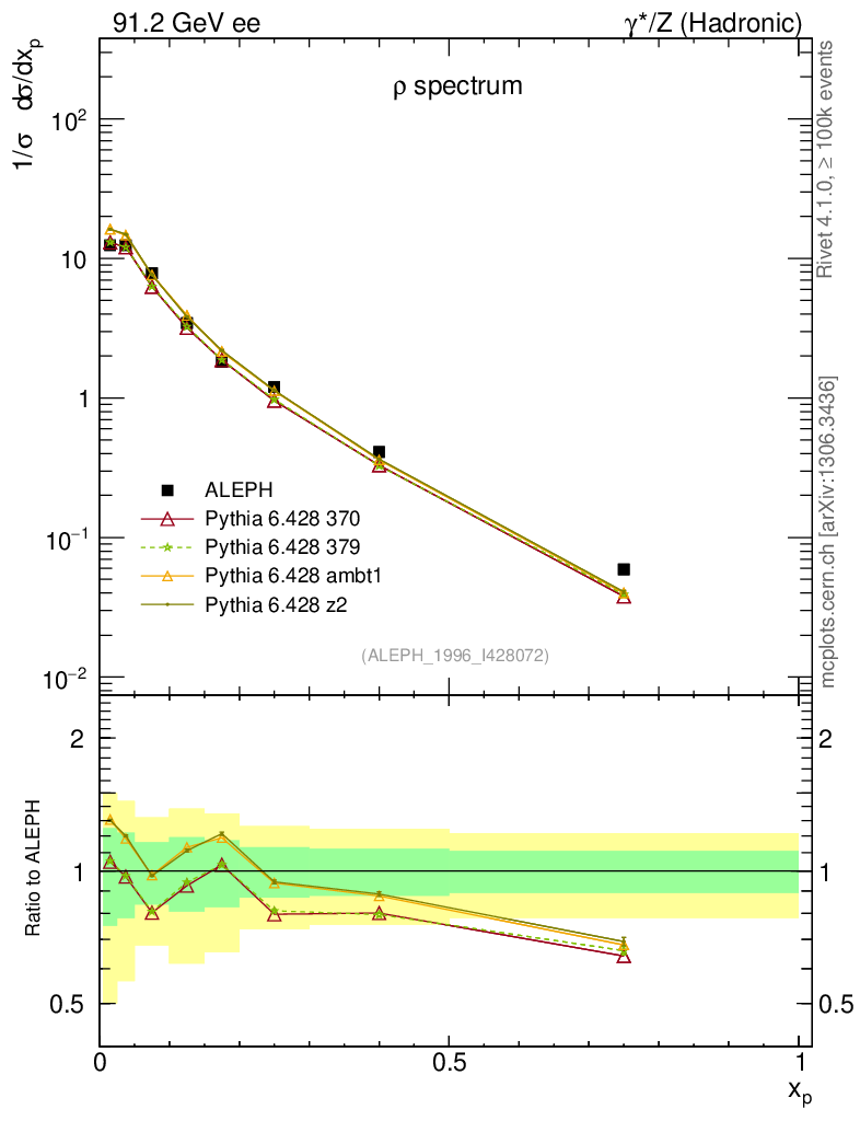 ee : γ*/Z (hadronic) : Identified Particles : ρ spectrum