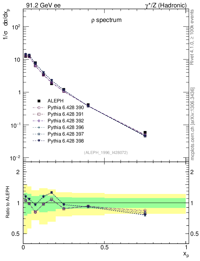 ee : γ*/Z (hadronic) : Identified Particles : ρ spectrum