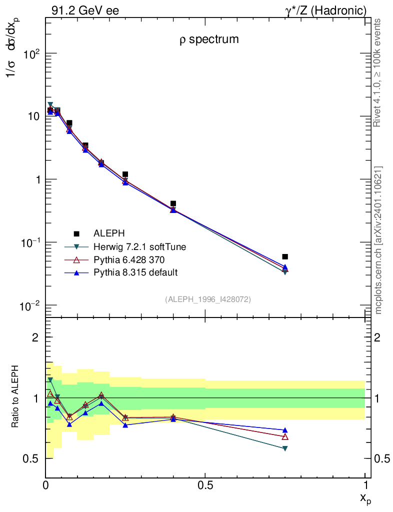 ee : γ*/Z (hadronic) : Identified Particles : ρ spectrum