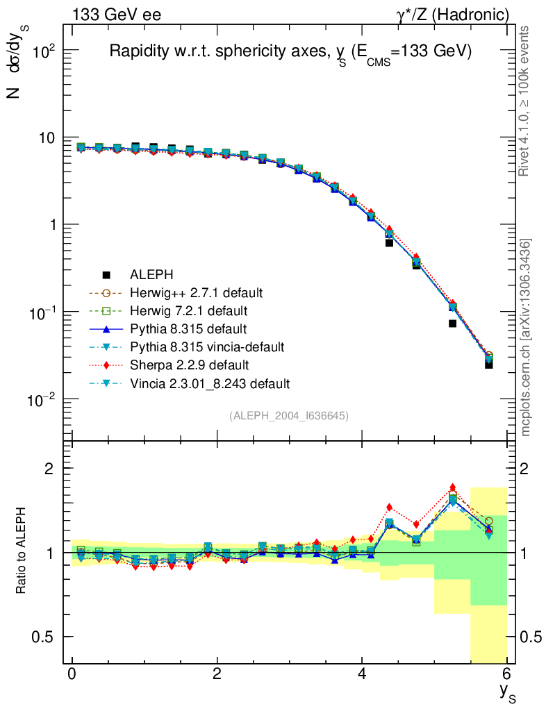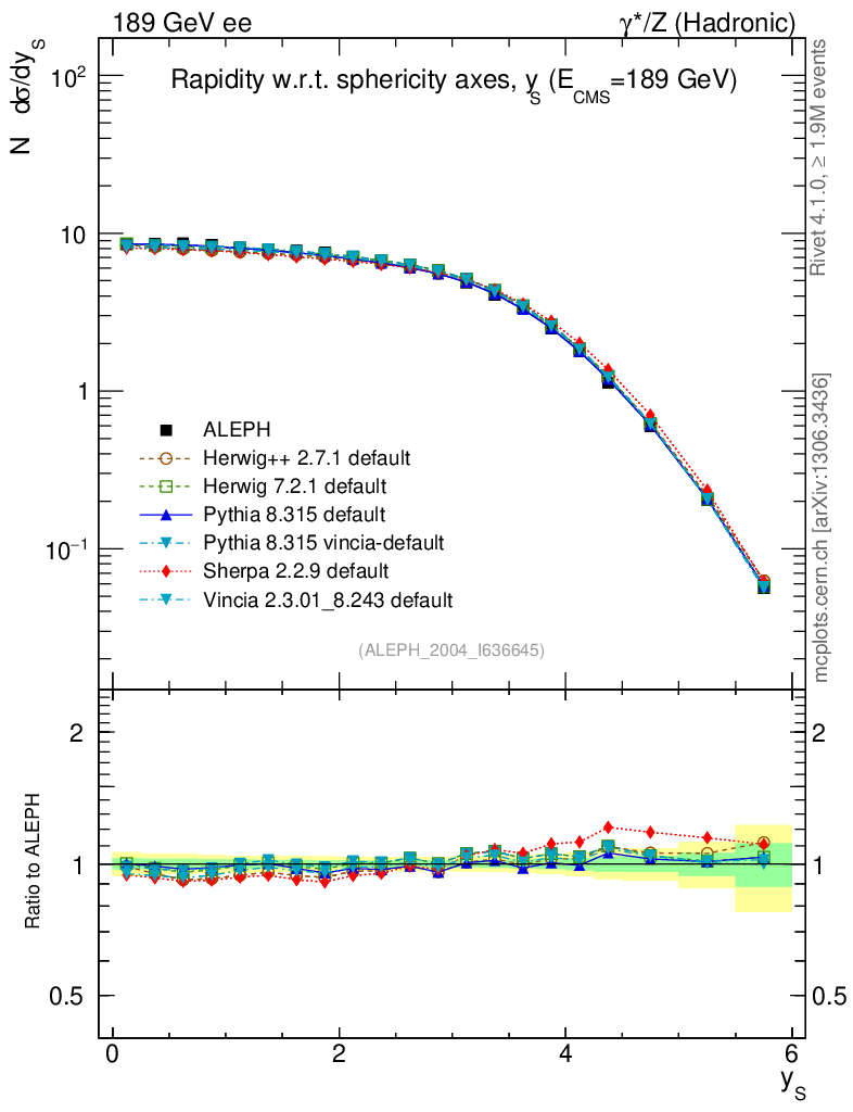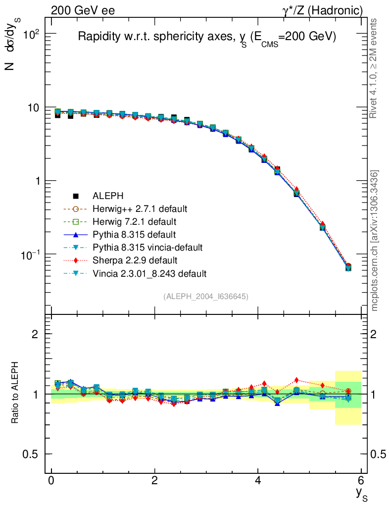 ee : γ*/Z (hadronic) : Charged Particles : Rapidity wrt Sphericity axis