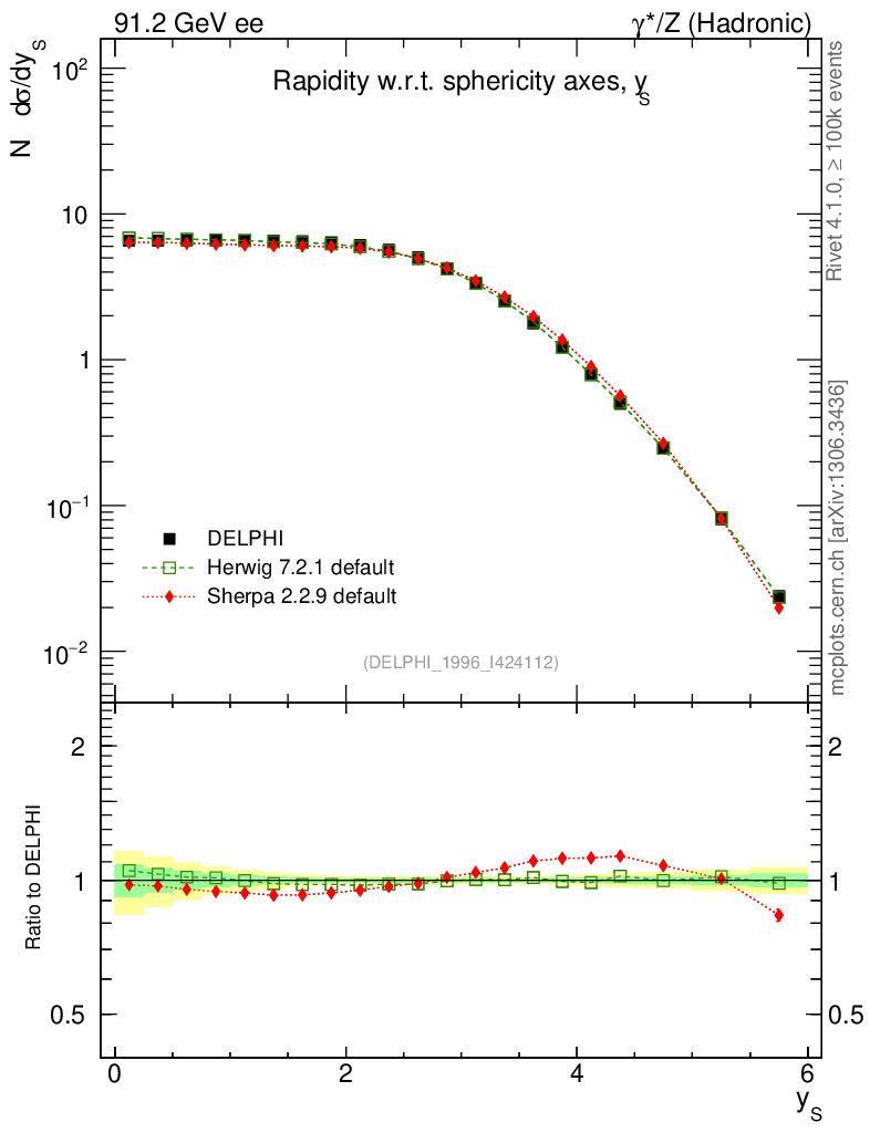 ee : γ*/Z (hadronic) : Charged Particles : Rapidity wrt Sphericity axis