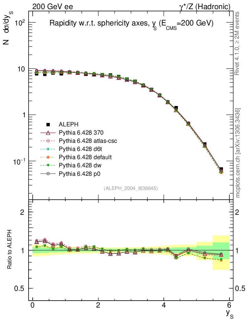 ee : γ*/Z (hadronic) : Charged Particles : Rapidity wrt Sphericity axis