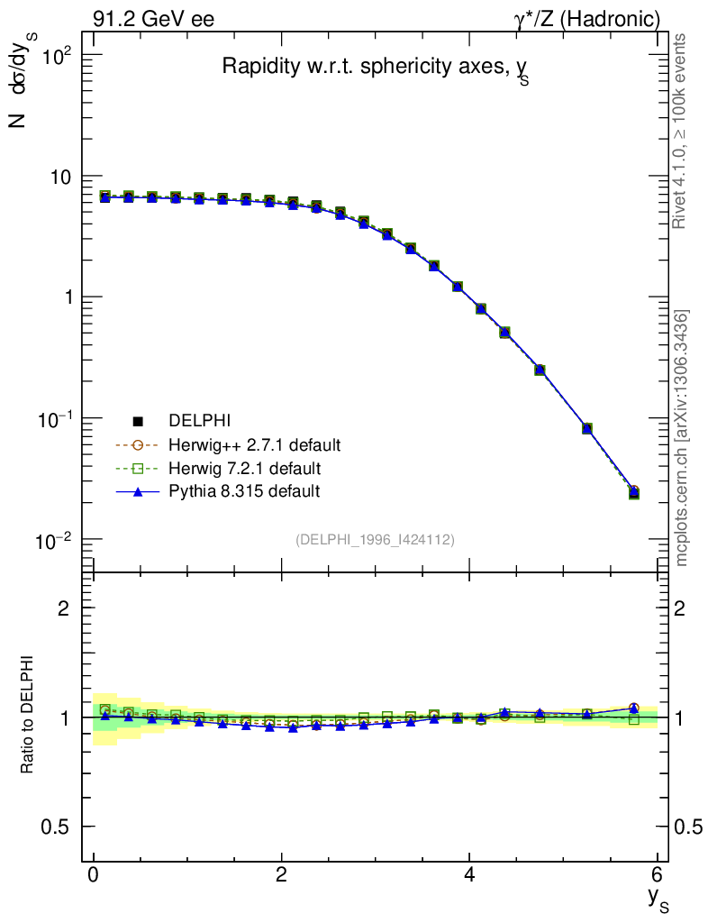 ee : γ*/Z (hadronic) : Charged Particles : Rapidity wrt Sphericity axis