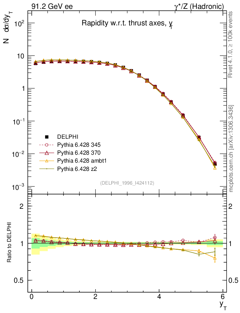 ee : γ*/Z (hadronic) : Charged Particles : Rapidity wrt Thrust axis
