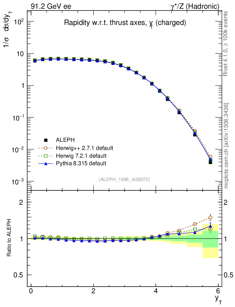 ee : γ*/Z (hadronic) : Charged Particles : Rapidity wrt Thrust axis