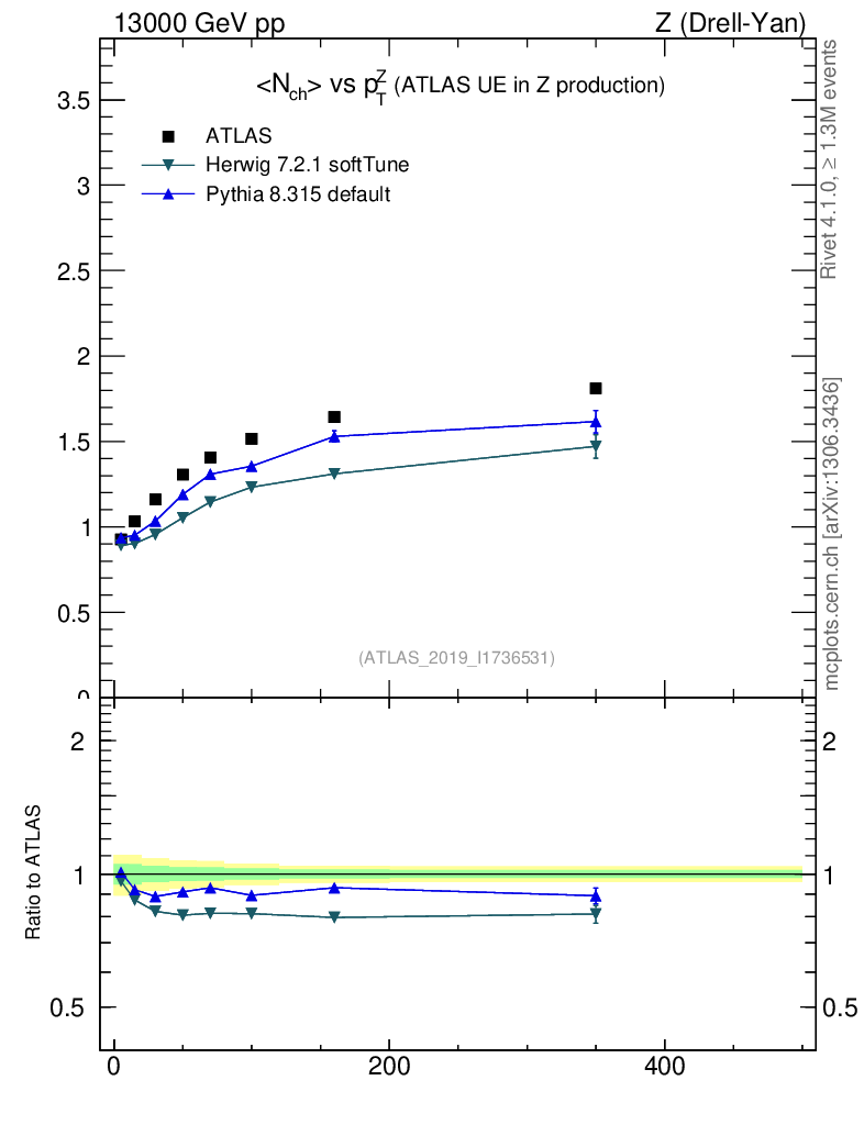 Z (Drell-Yan) : Underlying event : <Nch> vs p