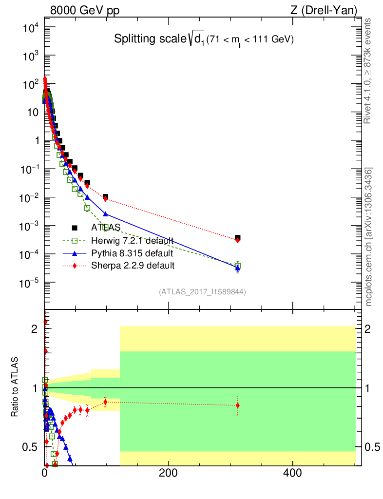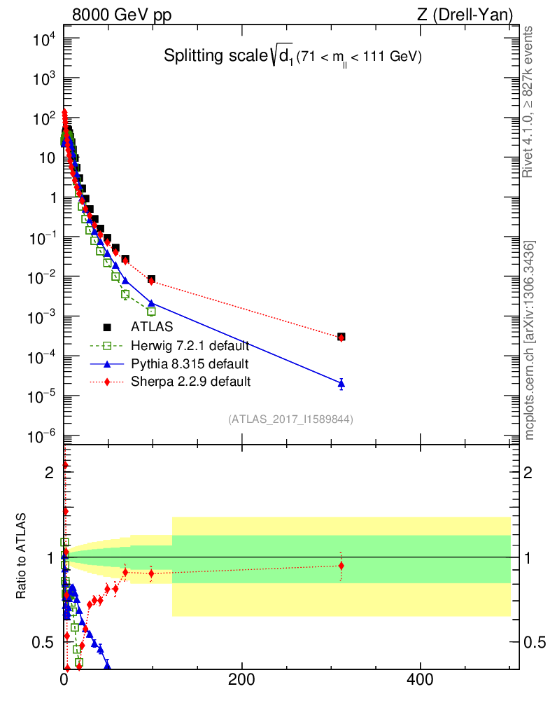 Z (Drell-Yan) : Jet Substructure : Splitting scale d1