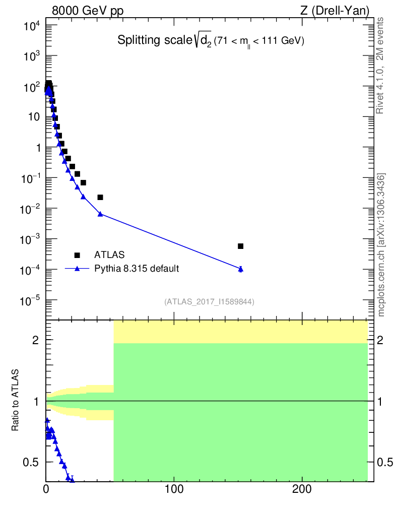Z (Drell-Yan) : Jet Substructure : Splitting scale d2