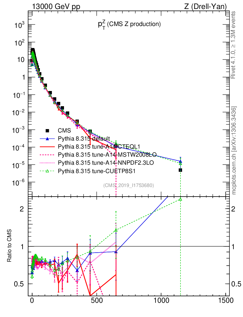 Choose generators/versions/tunes to plot : either from a pre-defined preset (left button) or from all available MCs (right button)